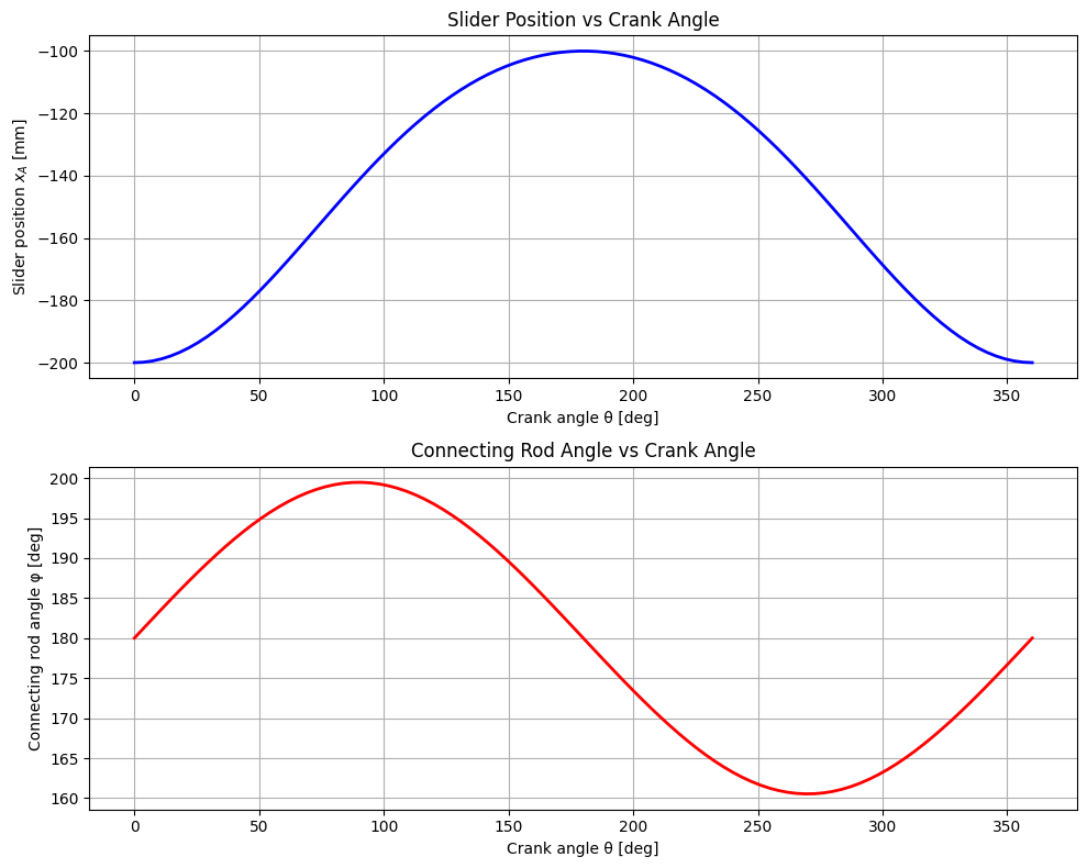ax.set_title(f'Crank-Slider Mechanism (θ = {np.rad2deg(theta):.1f}°, φ = {np.rad2deg(phi):.1f}°)')