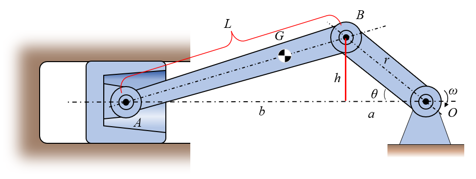 ax.plot([B[0], A[0]], [B[1], A[1]], 'r-o', linewidth=3, markersize=8, label='Connecting rod')