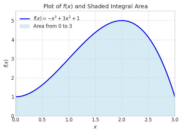 Let’s consider a polynomial function \(f(x)=1+3 x^2-x^3\) for \(x \in[0,3]\)