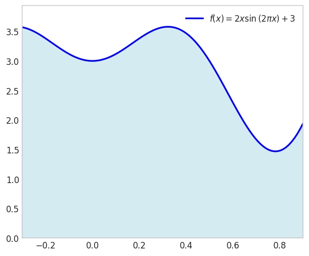 \[ f(x)=2 x \sin (12 x)+3 \quad \text{ for }x \in[-0.3,0.9] \]