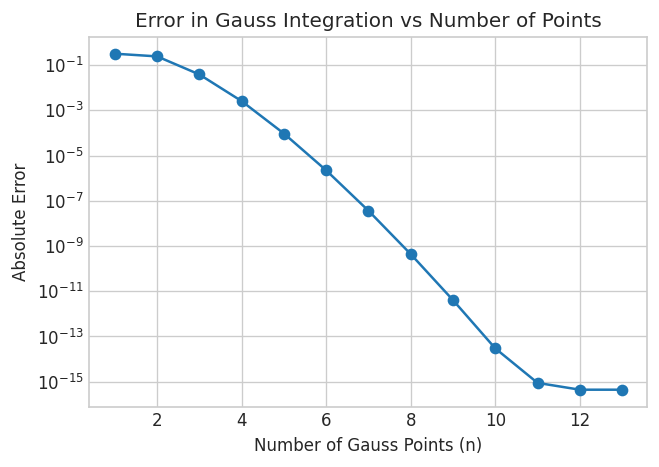 For engineering applications requiring only occasional numerical integration, symbolic methods like sympy.integrate or adaptive quadrature suffice. However, finite element analysis and similar computational methods require evaluating millions of integrals: element stiffness matrices, force vectors, and residuals at every iteration of every time step. In these contexts, computational efficiency becomes paramount. We therefore examine numerical integration schemes designed for efficient implementation and repeated evaluation, focusing on methods that balance accuracy against cost in a predictable, controllable manner.